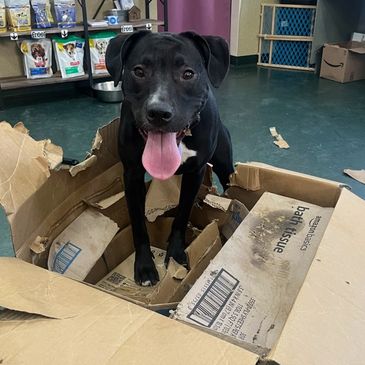 Bird is a 2 year old bully mix. She has 2 Masters Degrees in wiggle butts and general goofiness. She LOVES frolicking with River in the river (lol), STICKS, and flirting with our UPS man.