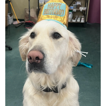 Sig is a 3 year old golden retriever. He is only in the office in the summer because he is pursuing his degree in veterinary medicine alongside his father Greg. (We are serious, he goes with his dad to all his classes) Sig's favorite activities are being VERY handsome, playing fetch, and blaming the lost chew toy on someone else.